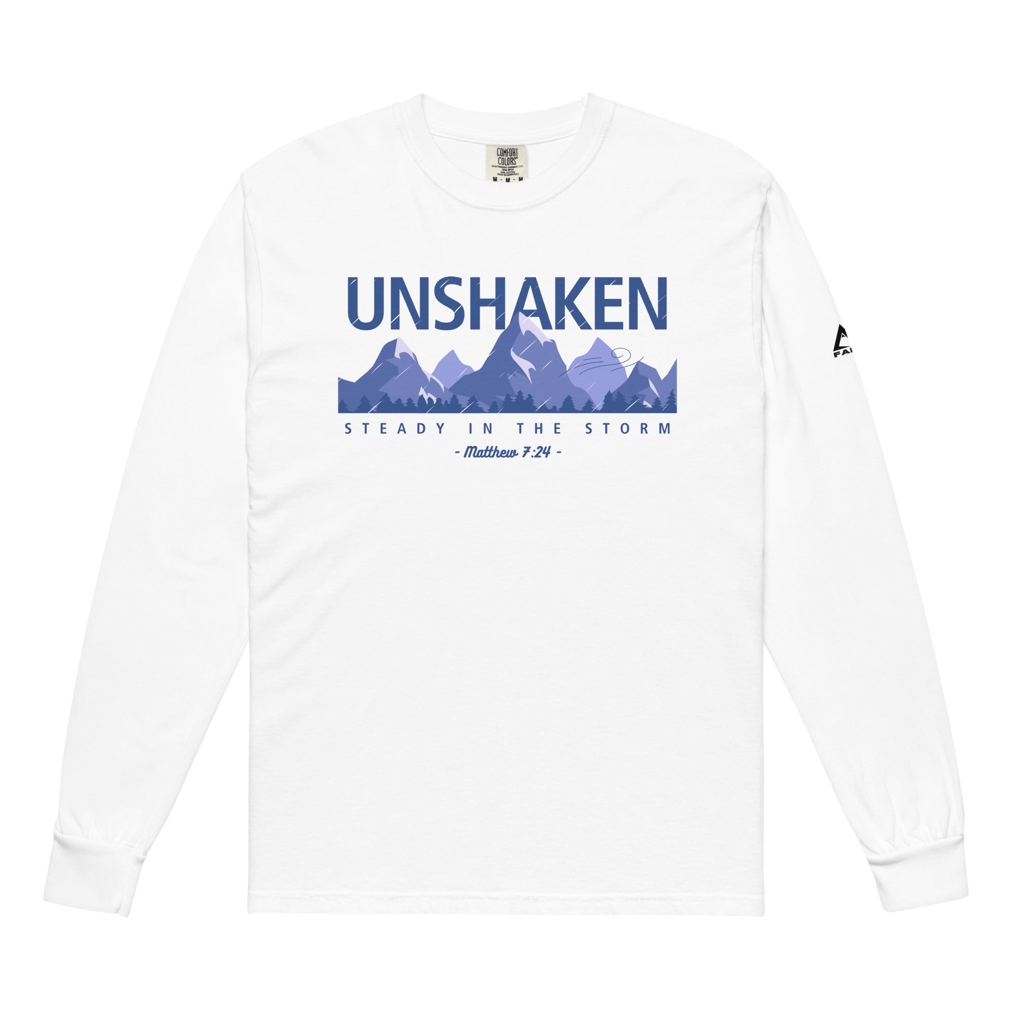 This heavyweight Comfort Colors long sleeve is garment-dyed for that soft, lived-in feel — and carries the reminder to stand firm when the storms come. Inspired by Matthew 7:24, it’s more than a shirt — it’s a declaration to live unshaken.