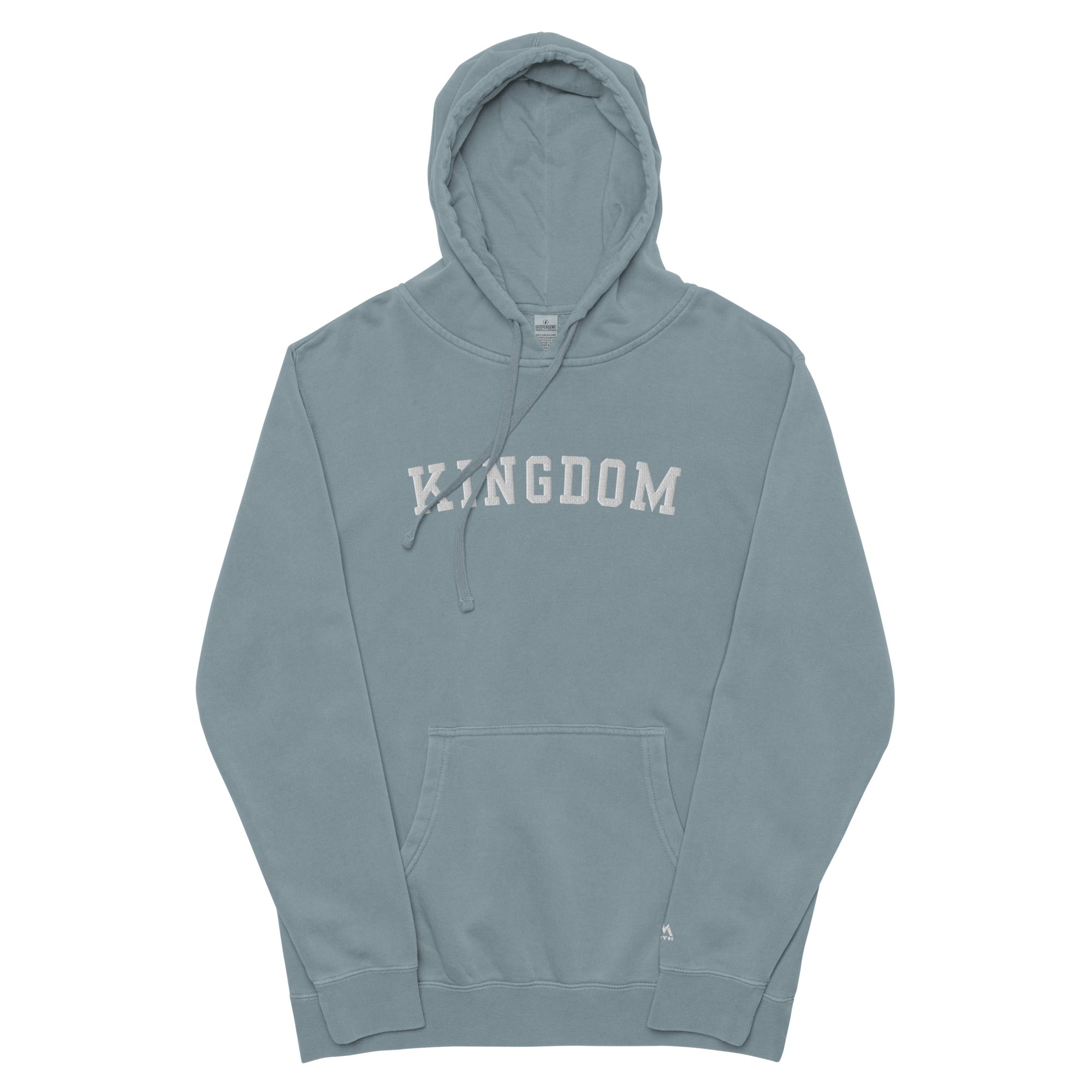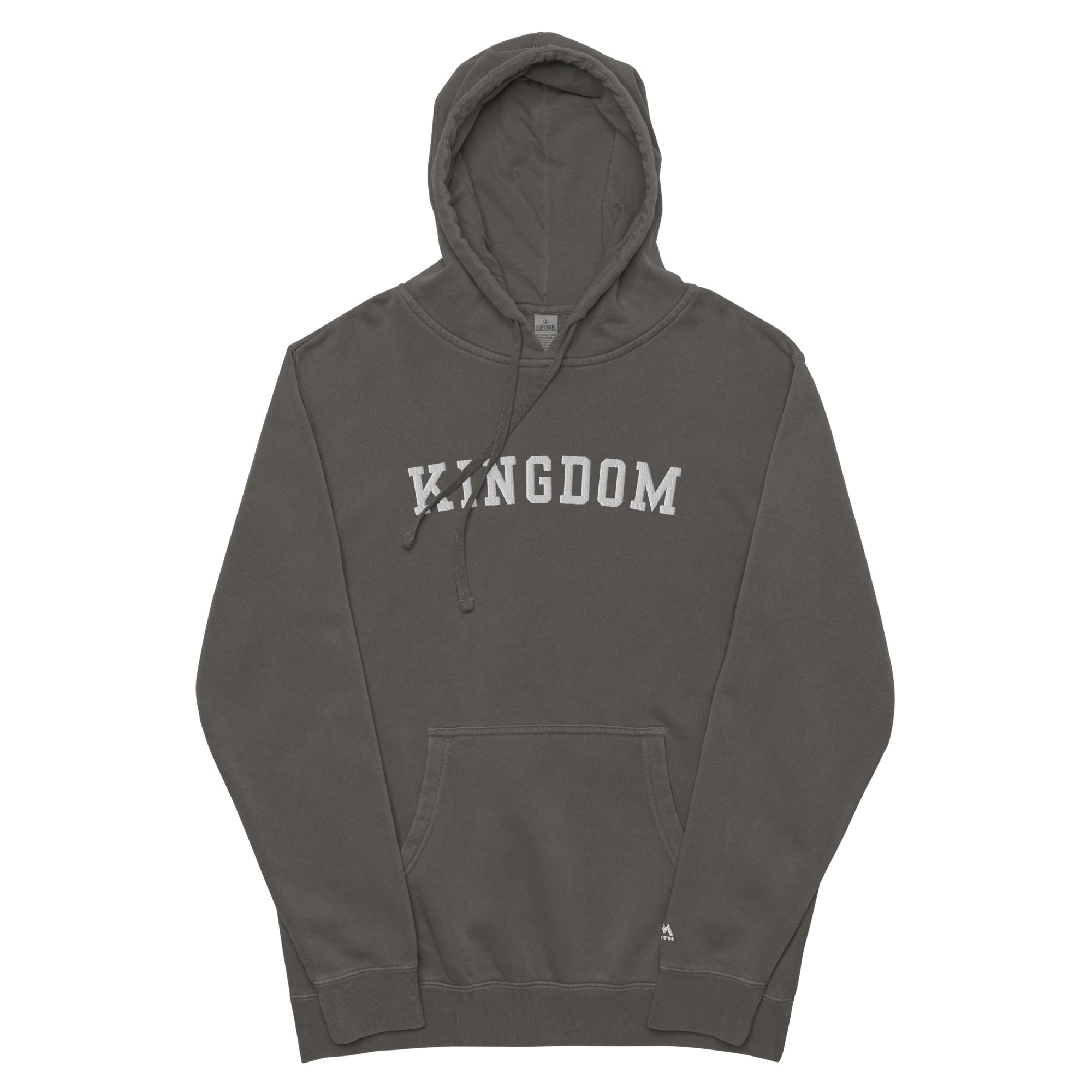 Elevate your essentials with the KINGDOM embroidered Hoodie from Independent Trading Co. Crafted for comfort and character, and including a minimal embroidered Mountain Faith Co. logo on the lower sleeve. This hoodie features a pigment-dyed finish that creates a unique, vintage look—no two pieces are exactly alike. Built from a soft cotton-poly blend with a 100% cotton face, it delivers both durability and an easy, lived-in feel. Designed with premium double-needle stitching, a jersey-lined hood, and matching drawstrings, this piece brings everyday comfort with timeless style.
